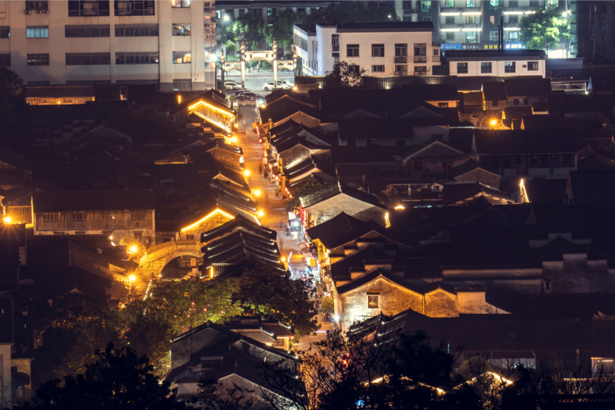夜幕降臨,華燈初上。夜晚的老街在燈光的照耀下,開始隱隱流淌出白天不曾見過的風(fēng)景。青石曲巷、庭院樓閣、青磚碧瓦,在月光的傾瀉下,顯得格外靜謐平和。