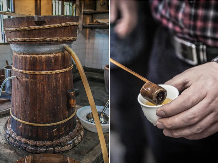 釀酒師傅24小時(shí)守候在酒缸邊,觀察著發(fā)酵的進(jìn)展,把握著開(kāi)耙的節(jié)奏,期待開(kāi)春收獲一壇壇玉液瓊漿。