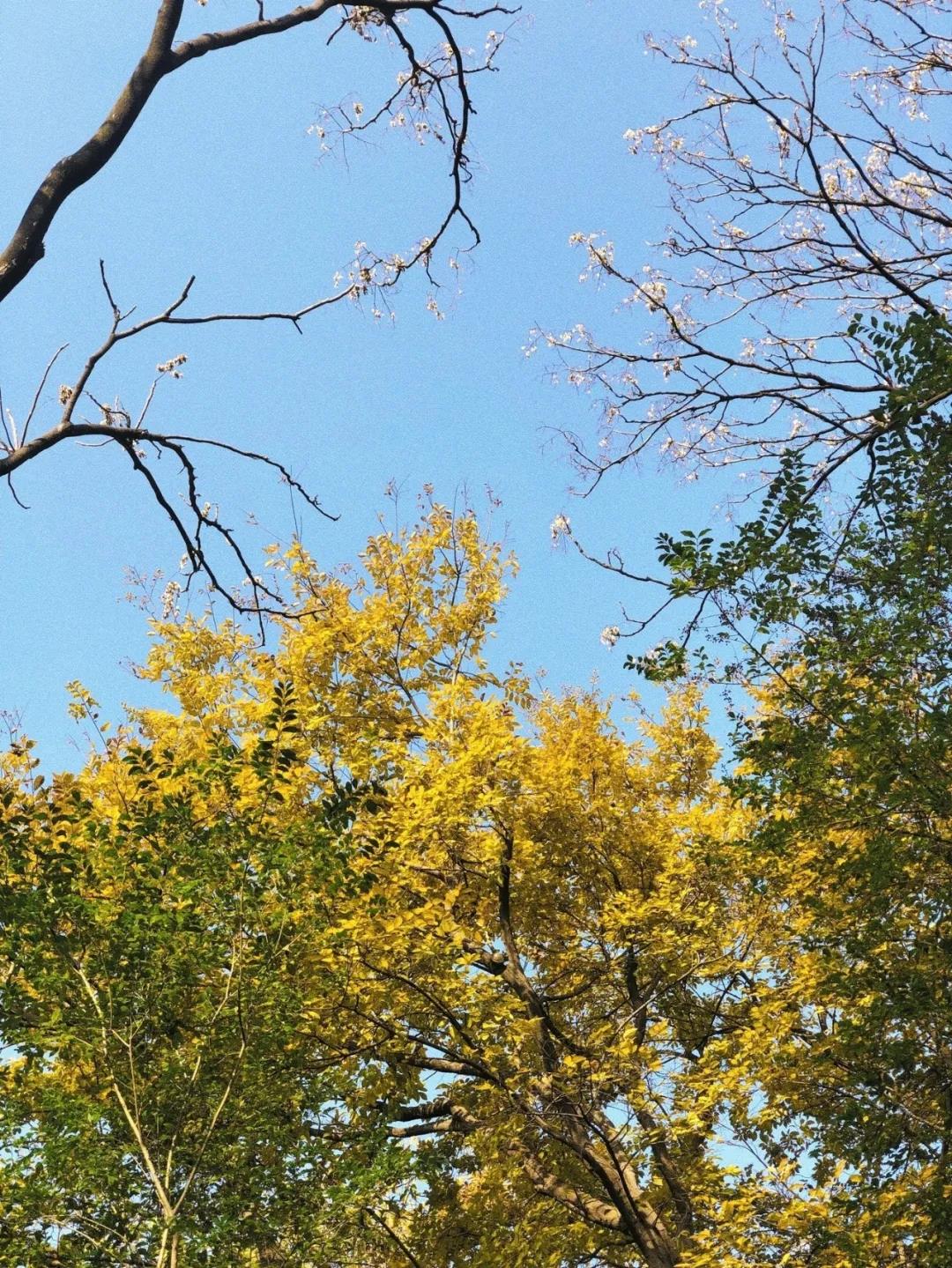 尤其是正午,天,海藍無云,陽光黃融融地蕩漾開來。初冬陽光雖然不少,但也不復夏秋的強烈,微冷的風配上和煦的陽光,人都變得慵懶起來,不愿動彈。