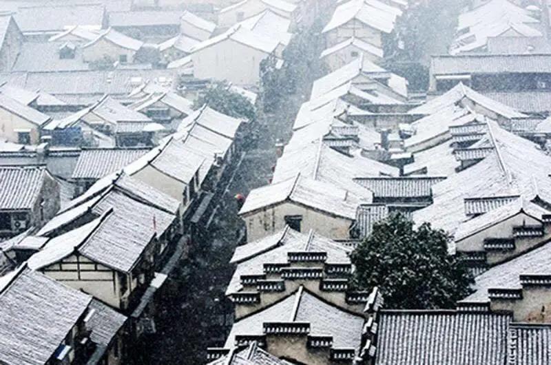 在冬天,遇上一場冬雪,大概是這寒冷的天氣里唯一的樂趣了。當水墨老街,遇上一場皚皚冬雪,詩意江南又有了新的模樣。
