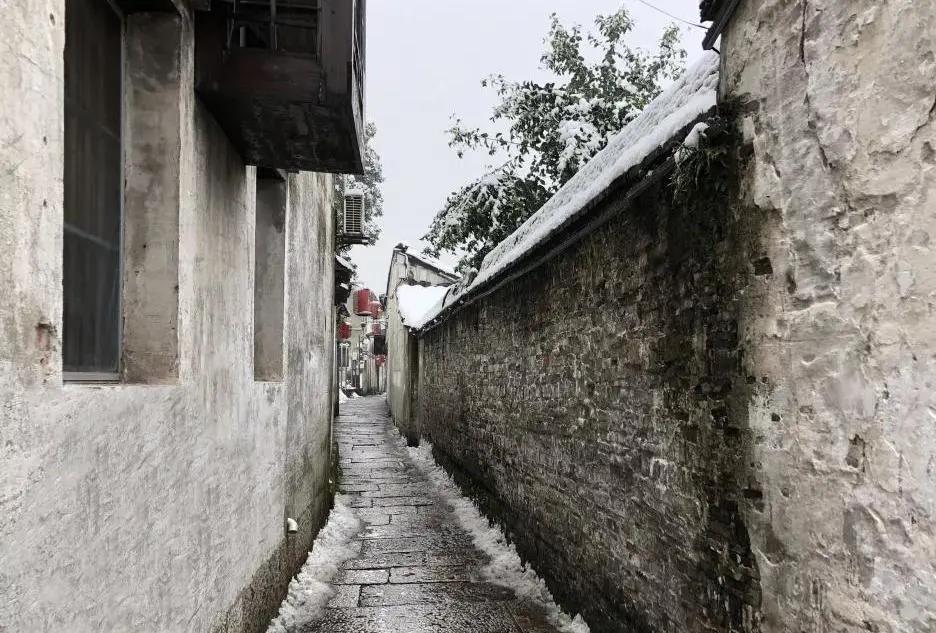 粉墻黛瓦被雪覆蓋著,偶然露出青黑色的線條,古樸、溫婉,不禁讓人想起那泛黃的歲月。