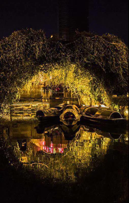 避開(kāi)了白日的喧鬧,踏著石板路,走過(guò)水鄉(xiāng)橋頭,漫步于璀璨的夜景中,可以感受到夜色下的古街風(fēng)韻。