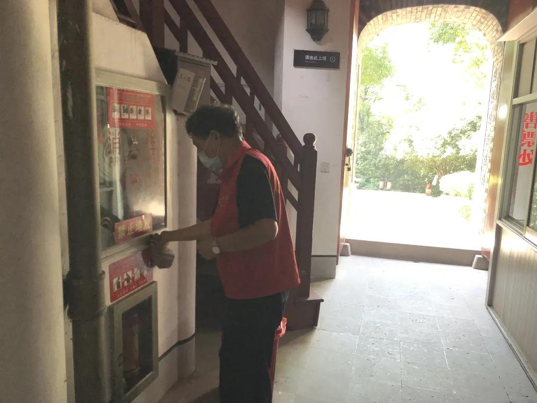 志愿者手拿鐵鉗、垃圾袋等工具,沿著綠化帶、草坪清理雜草,撿拾綠化帶內的煙頭等垃圾,清掃景區的衛生死角。 文明標識樹新風