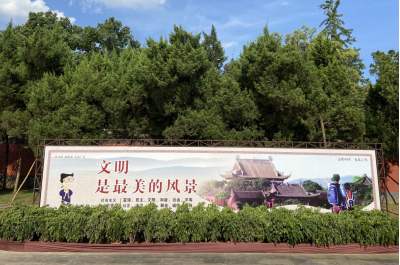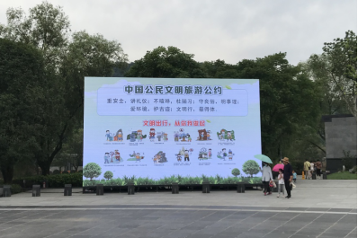 景區著力強化社會主義核心價值觀、文明旅游宣傳,在游客中心、大入口、景區內,通過噴繪廣告、宣傳海報、LED電子屏等多種形式,引導廣大游客融入文明城市創建的氛圍中。