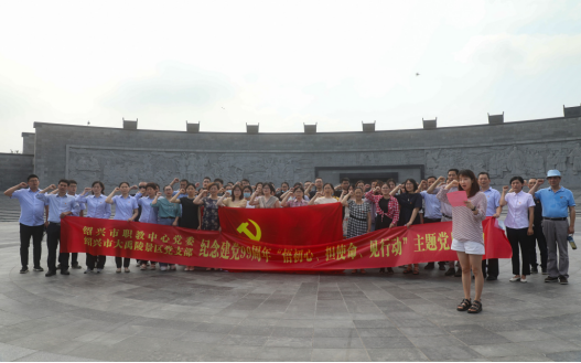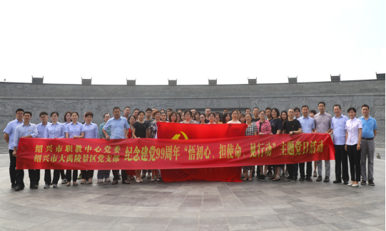為紀(jì)念中國(guó)共產(chǎn)黨建黨99周年,深入貫徹黨的十九大精神,鞏固拓展“不忘初心,牢記使命”主題教育成果,持續(xù)推進(jìn)“禹道三心傳千秋”黨建品牌建設(shè),積極探索開展新型黨建活動(dòng),7月1日建黨節(jié)下午,紹興市大禹陵景區(qū)黨支部與紹興市職教中心黨委共同開展了“悟初心、擔(dān)使命、見行動(dòng)”主題黨日活動(dòng),景區(qū)全體黨員和來自市職教中心的教職工黨員共計(jì)150余人參加了本次活動(dòng)。 下午14:00左右,黨員們分批由講解員帶領(lǐng)進(jìn)入景區(qū)參觀學(xué)習(xí)。一行人沿著大禹陵中軸線依次經(jīng)過十二文化柱、神道、九龍壇,感受了大禹陵的嶄新精神面貌和濃厚的文化底蘊(yùn)。14:20,全體黨員同志在祭禹廣場(chǎng)洛書臺(tái)列隊(duì)肅立,昂首面向矗立于石帆山之巔的大禹銅像,以大禹精神為指引重溫入黨誓詞,回憶入黨宣誓時(shí)的莊嚴(yán)承諾和堅(jiān)定決心,喚醒黨員責(zé)任,增強(qiáng)黨性意識(shí),以更加飽滿的熱情發(fā)揮共產(chǎn)黨員的先鋒模范作用,以自身的實(shí)際行動(dòng)積極踐行誓詞,永葆共產(chǎn)黨員的本色。