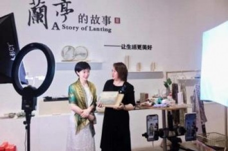 隨后,本次直播由蘭亭景區產業部副主任姚小云和新Ann圍巾飾界創始人錢紅梅,兩位主播全程講解,為大家帶來了眾多爆款產品:棉序棉柔巾、古畫系列絲巾、《蘭亭序》絲巾、橋緣提梁壺茶具、一面多詞多功能茶盤等。