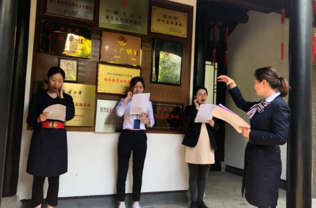 隨著疫情得到有效控制,紹興景區(qū)面向全國人民免費(fèi)開放,帶起了疫情后的第一波小高潮。景區(qū)在確保防疫工作安全有效開展的同時(shí),積極推動(dòng)復(fù)工復(fù)產(chǎn)。與此同時(shí),景區(qū)工作人員也不忘時(shí)時(shí)充電,講解員作為窗口的一道風(fēng)景線,在很大程度上代表著景區(qū)形象,是藏品和觀眾之間情感與信息交流溝通的最重要橋梁和紐帶。因此對(duì)講解員的定期培訓(xùn)顯得尤為重要。本月講解培訓(xùn)在首席講解員胡安娜的指導(dǎo)下進(jìn)行發(fā)聲練習(xí)。