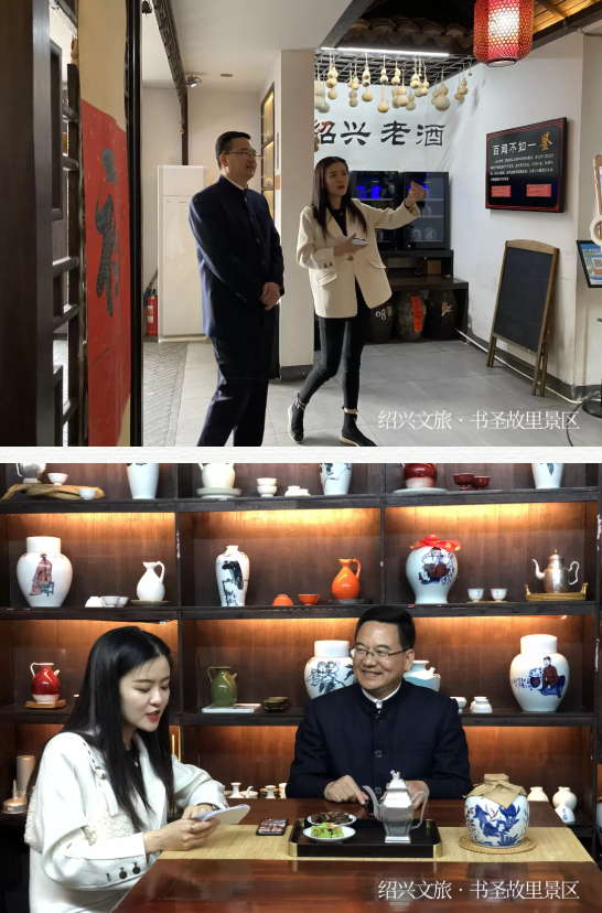 盛市長帶領大家“云”品嘗紹興手工釀造黃酒,向網友們娓娓講述了“曲水流觴”、“釵頭鳳”等與黃酒有關的故事。