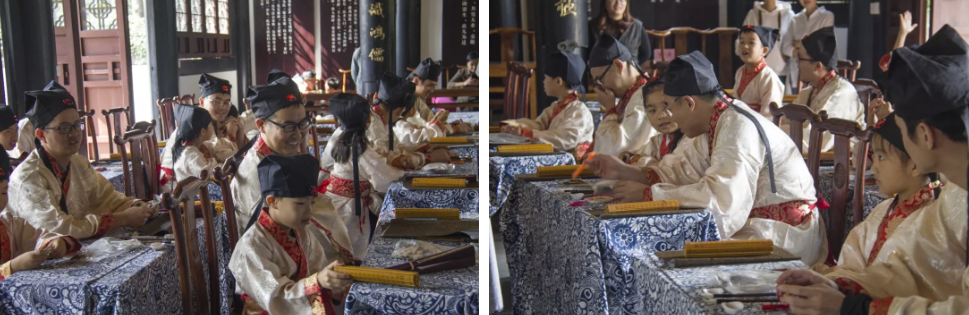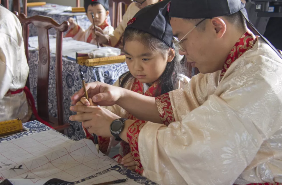 聽從夫子的指導(dǎo)向先賢致敬、向父親行禮。