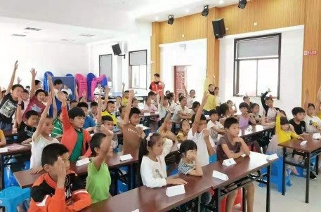 “蘭亭的故事”宣講團成員,兩兩一組,精心編排,如:小小朗誦家培訓,書法小課堂,垃圾分類小知識,紅色印跡故事分享等特色課程,每天到兩個“小候鳥”營地,為大家呈上一堂堂生動的課程,場場爆滿,同學們活力四射,精氣神兒十足!