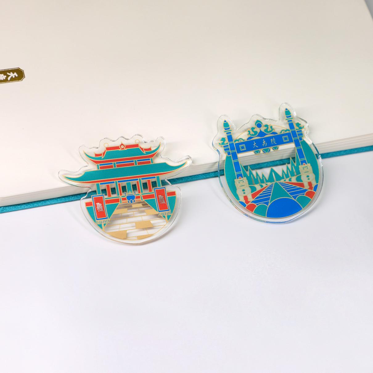 印象禹陵冰箱貼,根植于紹興對大禹文化的深度挖掘與創新轉化,從大禹治水的精神內核出發,結合大禹陵景區建筑等標志性元素,通過現代設計語言重新詮釋上古傳說,延續了禹陵文化符號的創意表達。