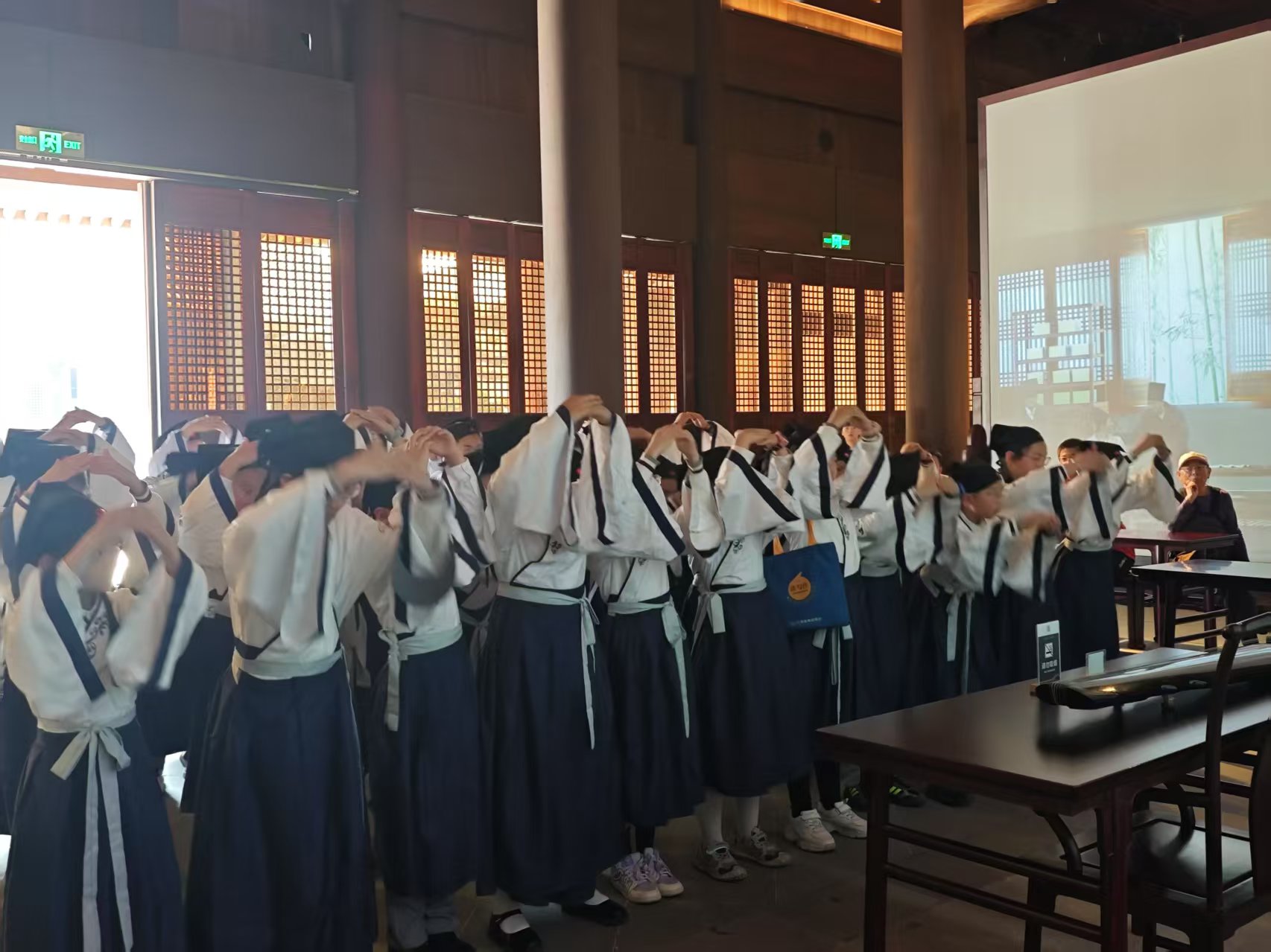 2.在指導(dǎo)老師的帶領(lǐng)下學(xué)習(xí)拜師禮儀,并向陽明先生行拜師禮。