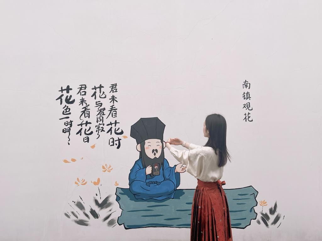 在紀念館一樓繪制了一幅南鎮觀花打卡墻,讓游客能夠與陽明先生進行合影。