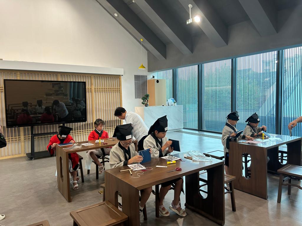 由工作人員帶領(lǐng)學生參觀紹興師爺館,了解紹興的師爺文化,學習掛號師爺所獨創(chuàng)的古老檢索法,通過手工制作中國傳統(tǒng)線裝本,感受傳統(tǒng)國學魅力。