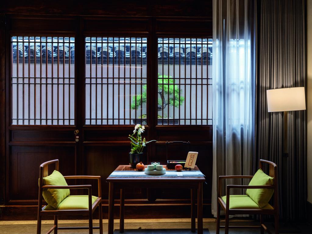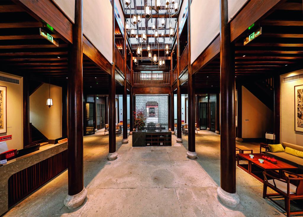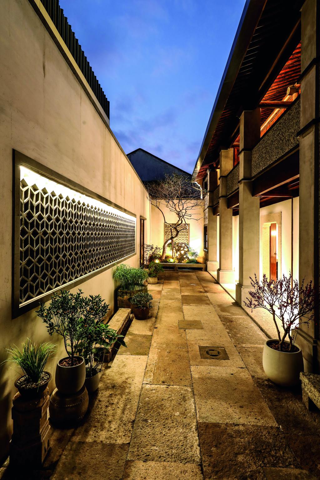 青藤別苑位于紹興市越城區后觀巷35號(徐渭藝術館西側),是具有徐渭文化特色的主題酒店。整體建筑面積780平方米,分上下兩層,主要經營住宿服務。酒店設有八個不同類型的房間,套房主題分別為渡海、眠松、行吟、行舟、對弈、扶醉、漁者、菊石、觀棋。入住其間,隨處可見文人筆下紹興人文風物的靈秀。酒店還采用 “奪得千峰翠色來” 的越窯青色為局部墻體上色,營造出溫馨放松的居住環境。客房古樸清雅,干練的空間線條、高級的材質以及藝術化的裝飾,都以低調的設計展現著空間的本質,讓賓客在休憩之余能感受到古今韻味的自然連接,筆墨流轉間彰顯臺門禮序,簡筆勾勒中續寫江南古韻。