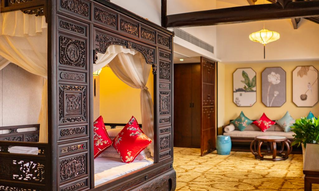 酒店位于魯迅故里西側出口處,枕河而立,酒店房間融入魯迅文化,擁有大床房、雕花大床房、雙床房、家庭房、豪華套房等多種房型。
