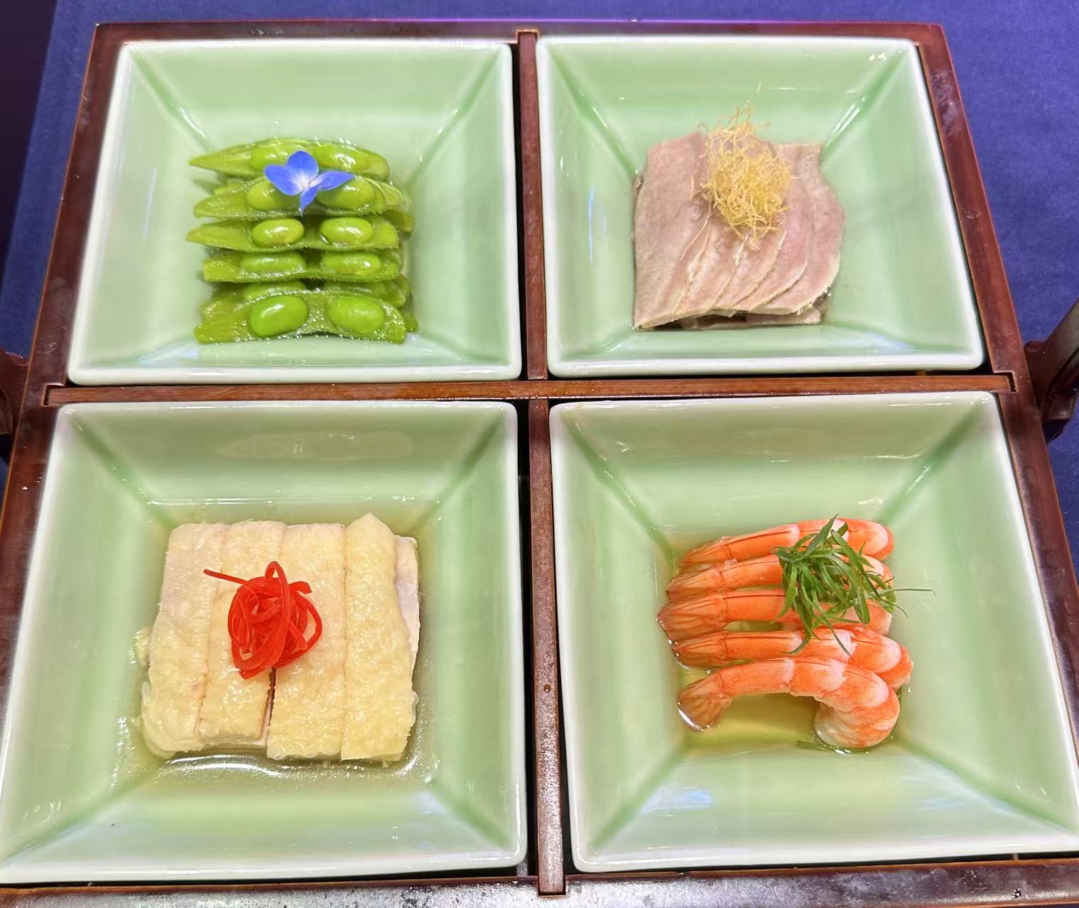 酒店特色菜品:碧綠煎鮮貝、碧綠醬香牛肝菌、豉油土豬肉、國際海皇羹、國際醬香牛排、紅燜羊腩煲、臘肉花生苗、蓮花奶香盞、紹式糟四樣、特色目魚大烤、網紅脆皮豆腐等。