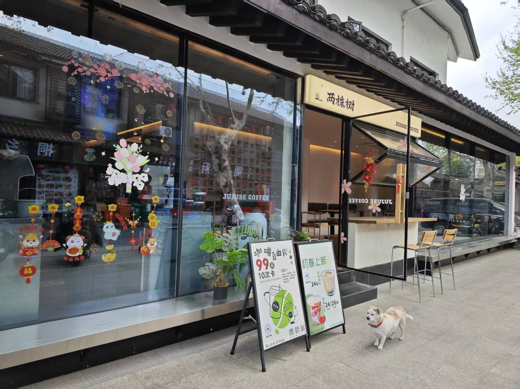 “兩株樹咖啡 海棠店”位于越城區勞動路98號。“兩株樹”咖啡是文旅集團自創的咖啡品牌,是源于魯迅散文集《野草》中的原句“在我的后園,可以看到墻外有兩株樹,一株是棗樹,還有一株也是棗樹?!彼鶆摻ǖ聂斞肝幕黝}咖啡品牌?!皟芍陿洹笨Х燃Х取⒉栾?、輕食及文創產品于一體,不僅提供咖啡等飲品,還承接公司團建活動,致力于推廣獨特的咖啡文化。