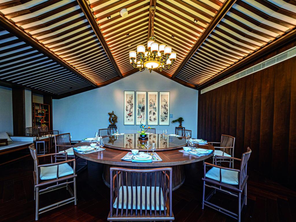榴花齋位于后觀巷33號,是以紹興菜為背景,致力于呈現(xiàn)紹興菜精華的主題餐廳。餐廳秉持以景入肴、以詩入肴、以畫入肴的理念,結合時令創(chuàng)制出與徐渭文化相關聯(lián)的菜品,用美食致敬徐渭,打造獨特的紹興城市味道。餐廳還從徐渭的詩作“半生落魄已成翁,獨立書齋嘯晚風。筆底明珠無處賣,閑拋閑擲野藤中”選取“青藤”“榴花”“明珠”“晚風”四個獨具徐渭意向與符號的詞匯命名四個包廂,在表達對徐渭致敬的同時,也為賓客帶來一場文化盛宴。