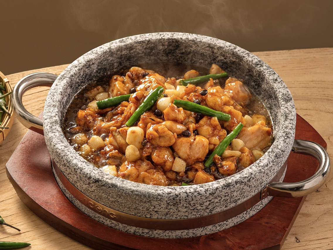 特色菜品有蔥椒爆牛肉、東坡仔排、粉絲裹蝦、醬爆石鍋蛙、椒麻大白條、龍井烤雞、面包誘惑、狀元芋頭煲