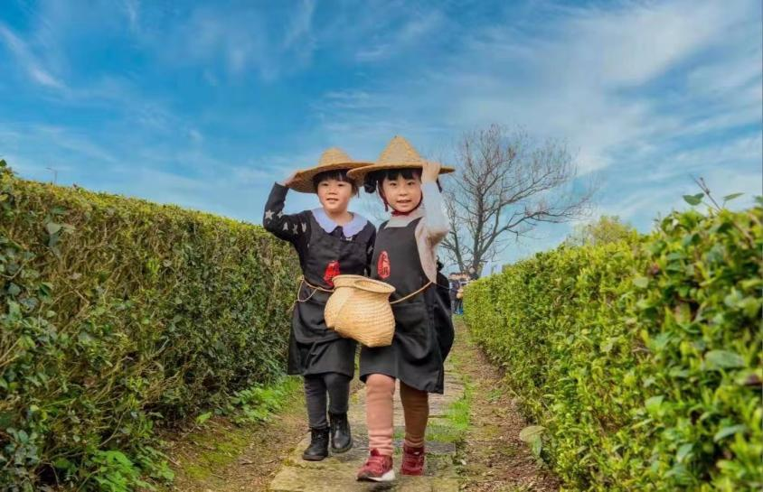 ??? 春季除了采摘這件大事,做回“小茶人”研學活動也伴隨著茶葉的瘋狂成長而拉開序幕。登上繞門山、背上小竹簍、在茶海里挑冒尖的嫩芽采下。采摘下來的茶須于日光下攤曬,才能進行炒制。而此時,不可錯過的便是體驗親子采茶的樂趣