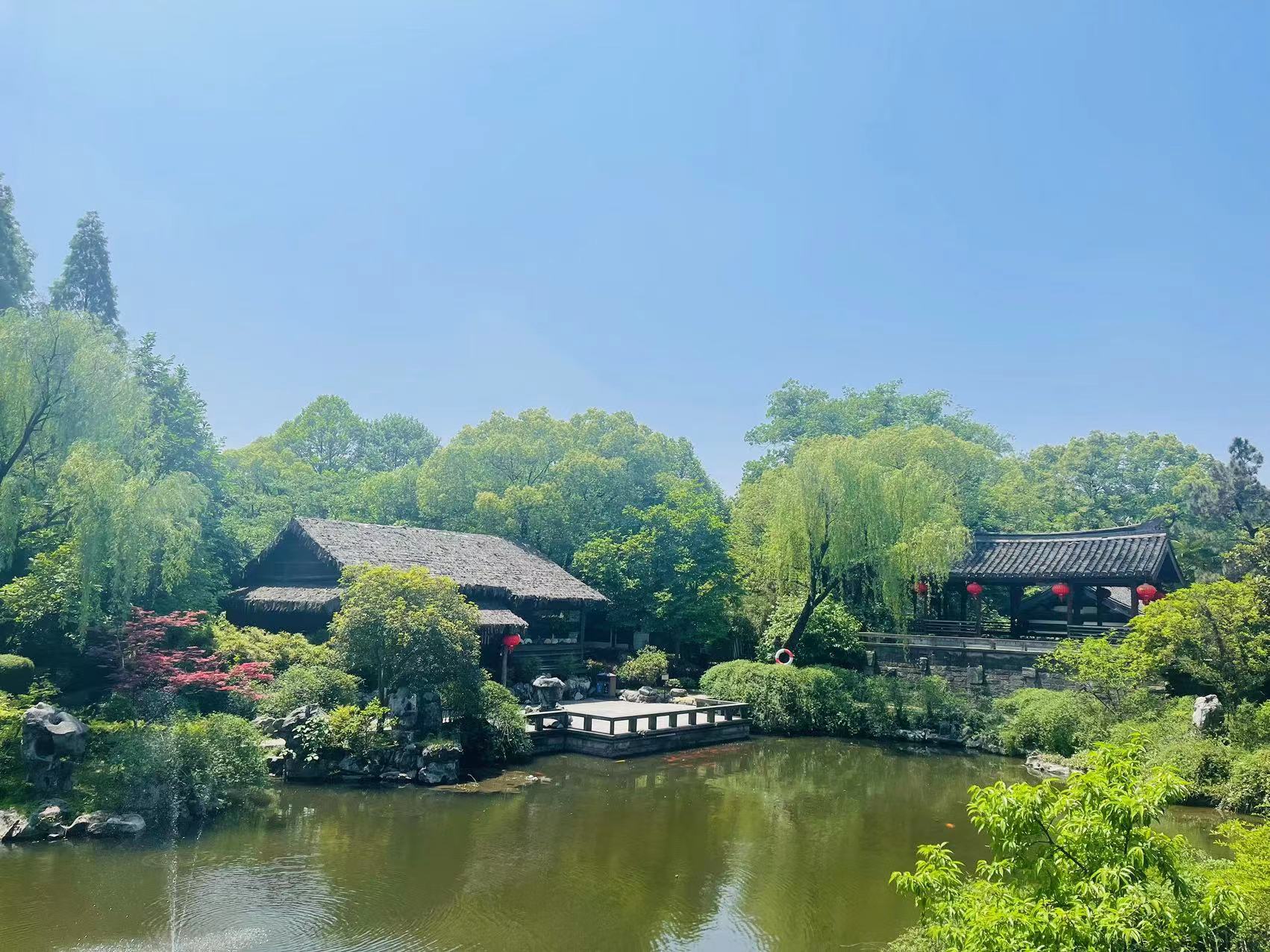 東苑以愛情為主題設計、建成,又稱“愛情苑”。“祈愿臺”是訴說心愿的地方。旁邊的心形水池名為“瓊瑤池”,名取自于《詩經》詩句:“投我以木桃,報之以瓊瑤”。苑中一座干欄式的建筑,名為“廣耜齋”,是東苑的主景。陸游曾在他的《丁未應州勸農文》中寫到“無事末作,無好終訟,深耕廣耜疾耘,安豐年而憂歉歲”,表達了詩人對時人勤勞耕作、豐不忘歉的希望;也包含了希望有情人齊心耕耘愛情的祝愿。湖中的兩塊巨石被命名為...