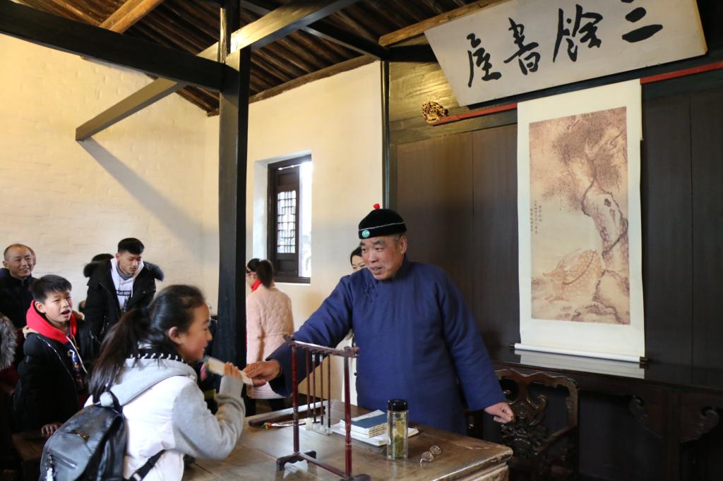 三味書屋旁邊的“三余書屋”內設有一個舊時的私塾演示活動,游客可以參與其中,與老先生一起念念“三字經”,對對課,親身感受魯迅當年讀書的意境和紹興舊時的私塾文化?;顒訒r間:上午 9:30——10::00 下午 14:30——15:0010:30——11:00 15:30——16:00活動地點:魯迅故里三余書屋