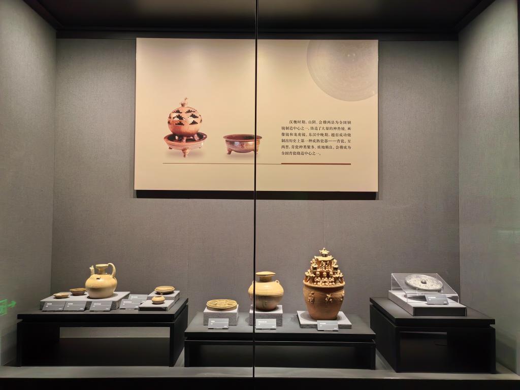 漢魏時期山陰、會稽兩縣是全國銅鏡制造中心之一,鑄造了大量的神獸鏡、畫像鏡和龍虎鏡。東漢中晚期,越窯成功燒紙出歷史上第一種成熟瓷器——青瓷。至兩晉,青瓷種類繁多,質地精良,會稽成為全國青瓷燒造中心之一。此處展出了漢魏時期的銅鏡和青瓷實物