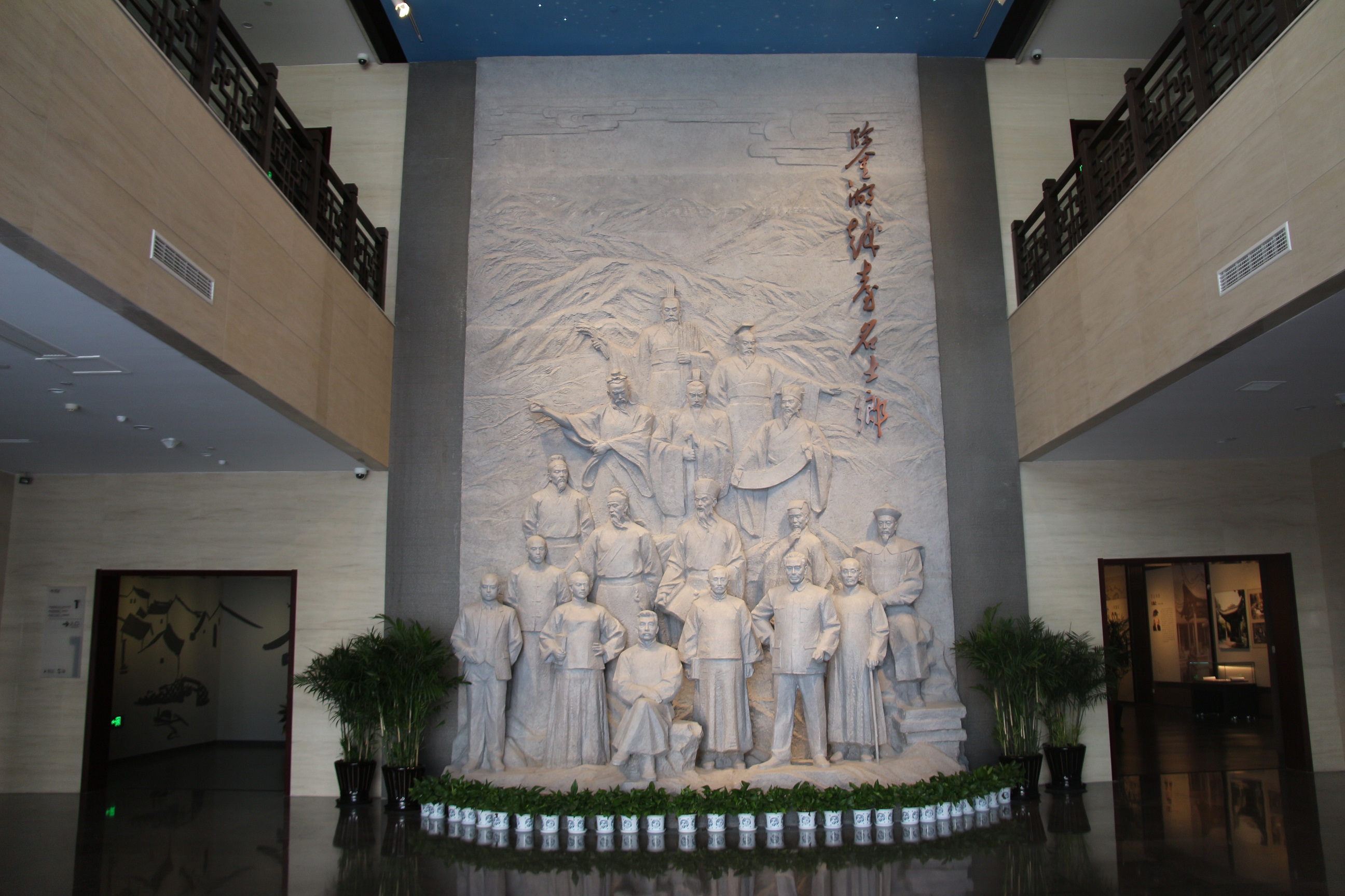 紹興名人館大廳里群像墻以大禹、王羲之、王陽明、徐渭、魯迅、周恩來等17位紹興名人為核心,展示了一個群星璀璨、光耀中華的紹興名人文化,偉人毛澤東曾在詩中贊頌紹興為“鑒湖越臺名士鄉”