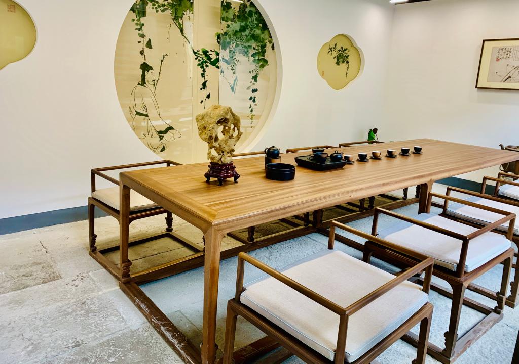 大乘弄12號為一幢兩層建筑,一層為公共區域,二層是包廂區,可供游客在這里歇息品茶,空間布局合理,家具為明式改良款,在頗具親和力的木質色調基礎上,加入了明代崇尚的紅色綴色,令整個空間更為溫馨