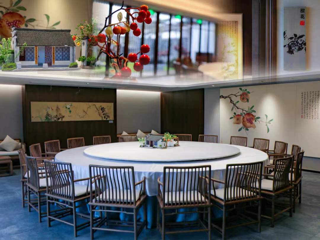 榴花齋主題餐廳位于青藤廣場西側。根據紹興傳統民居樣式,庭院與沿廊俱備,奇石與竹木并存,打造舒適優雅的就餐環境。一樓有雅致的庭院景觀,二樓有面向青藤廣場的觀景平臺,設計大氣合規